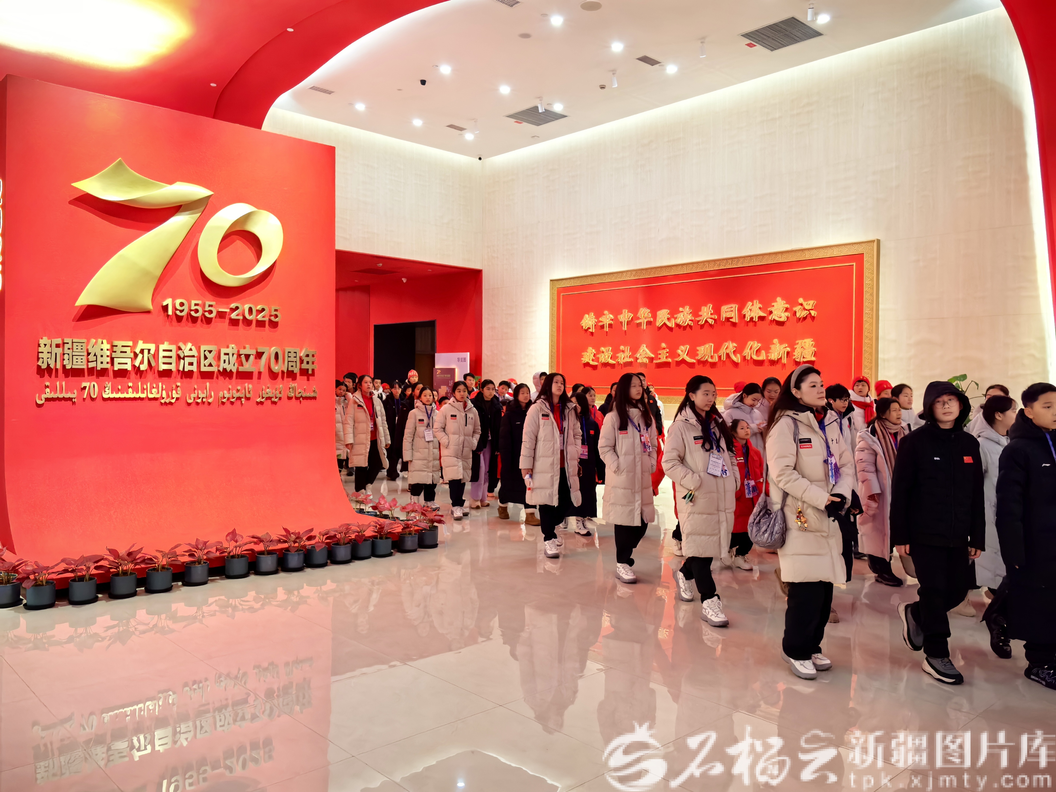 1月30日,2026年“奔跑吧·少年”全国青少年冬季阳光体育大会的青少年们,参观自治区成立70周年主题成就展。天山网-新疆日报记者 康颢严摄