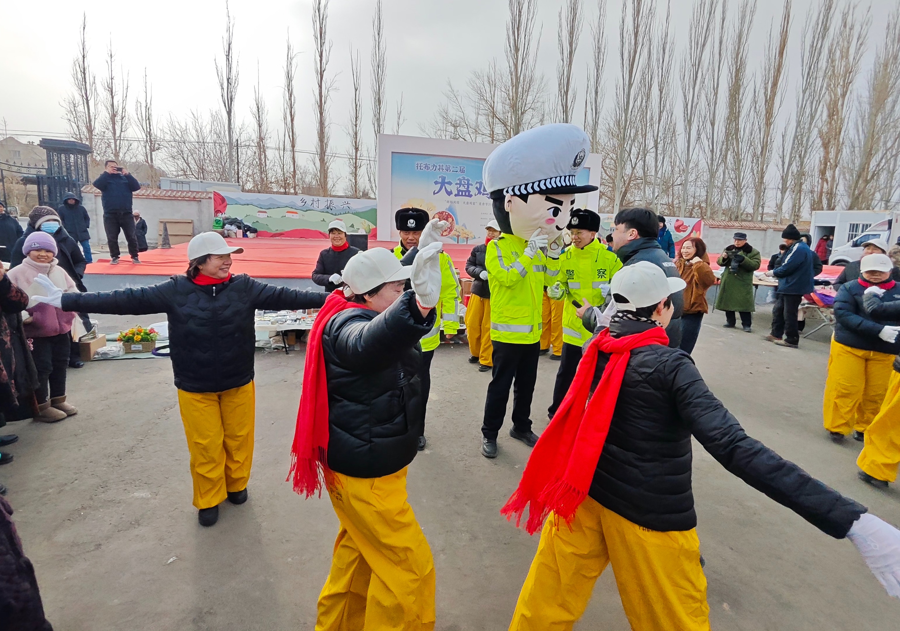 1月30日,民辅警在巴扎上与游客共舞。通讯员 严万海摄