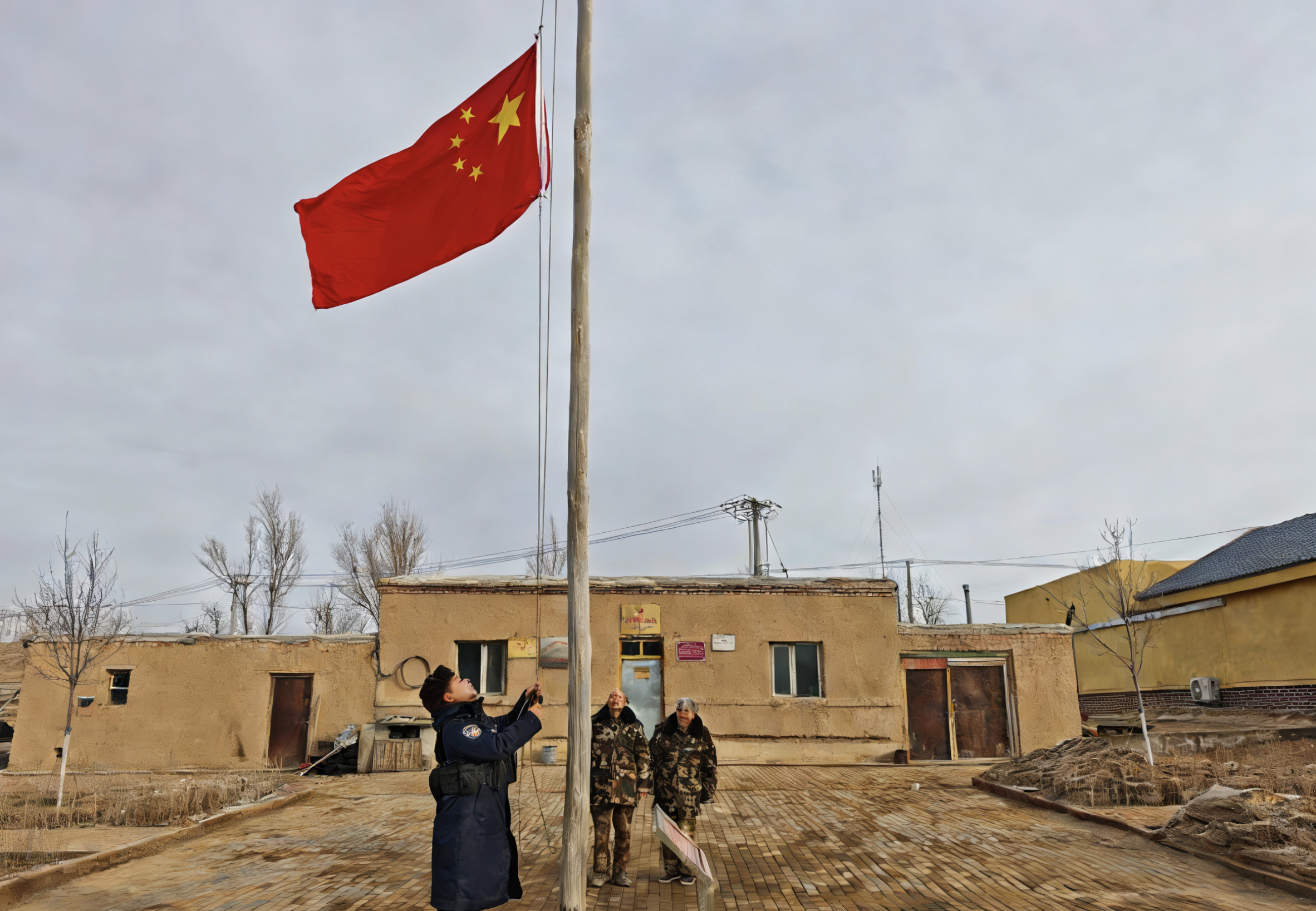 28岁的新疆出入境边防检查总站塔城边境管理支队吉也克边境派出所四级警长陈云聪搓着冻得发红的双手,与魏德友并肩而立。记者在现场看到,两人稳稳将国旗系上绳,《义勇军进行曲》在空旷的边境线上响起,国旗迎着风雪徐徐升起、迎风舒展。朝阳刺破云层,洒在两人肩头,也照亮了眼前茫茫雪原。