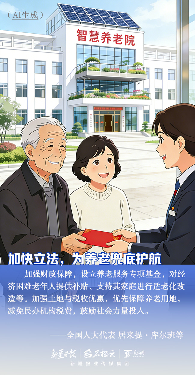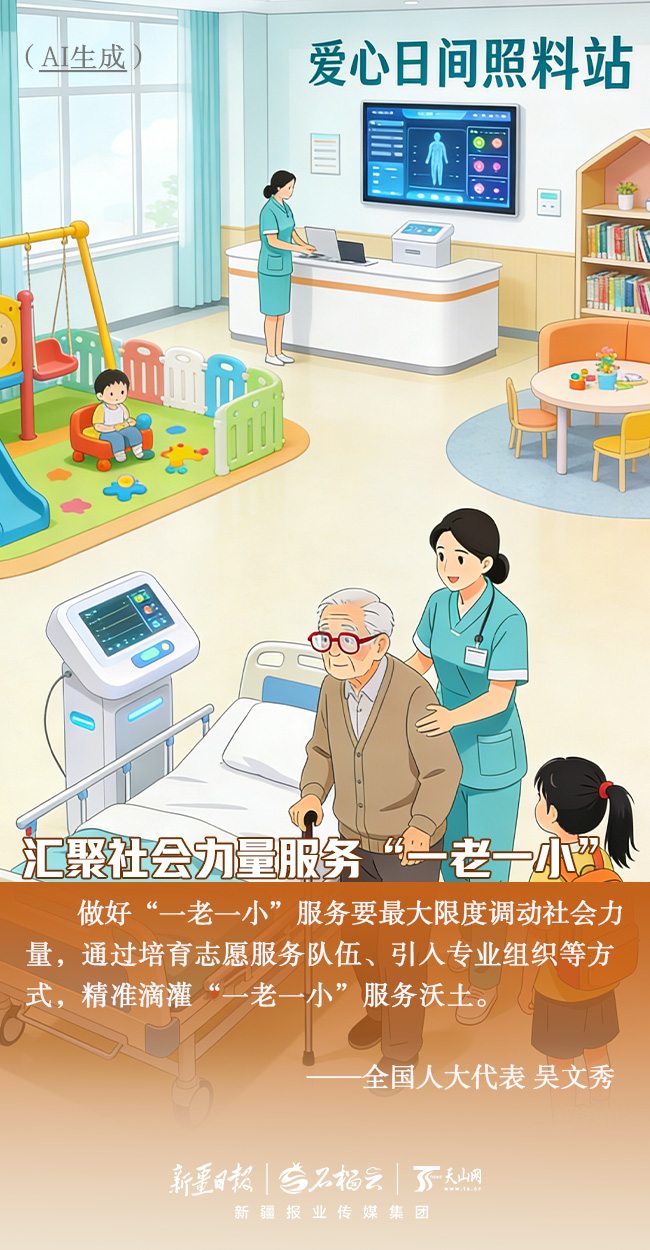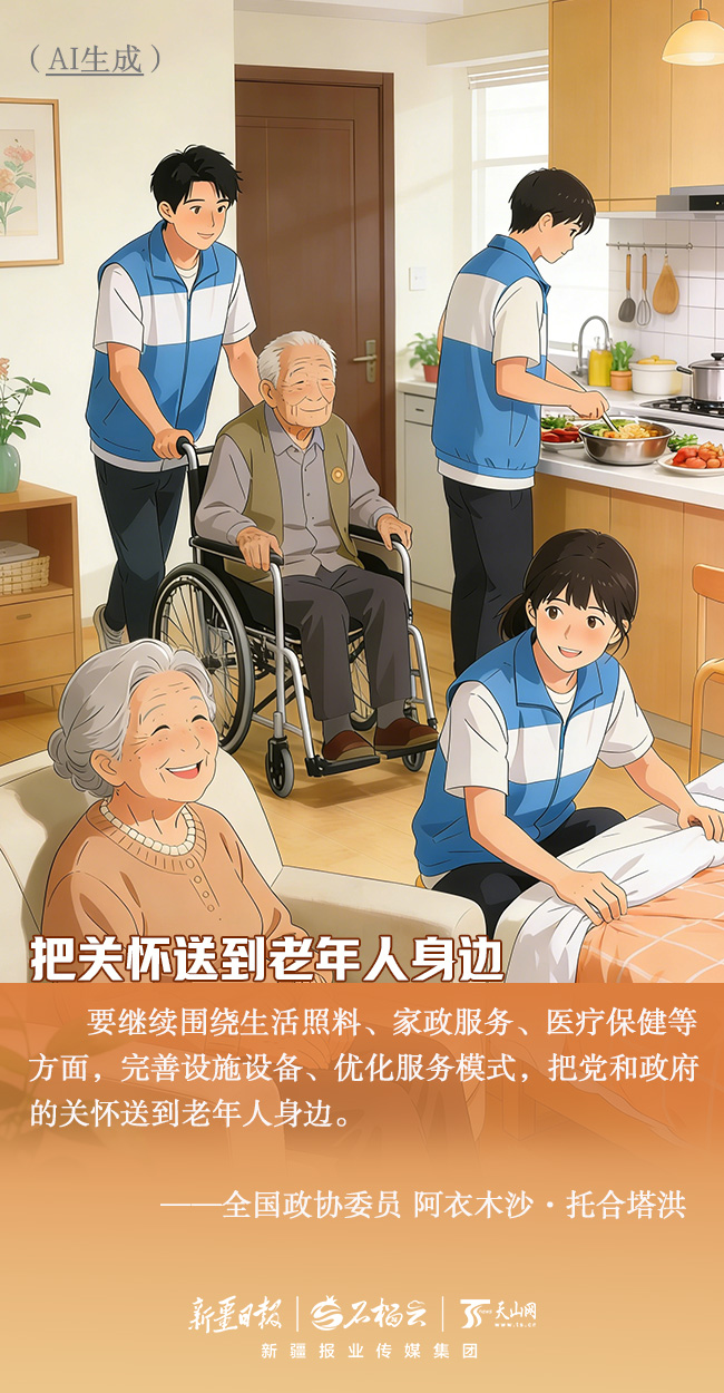聚焦“一老一小”,情系千家万户。全国两会上,来自新疆的全国人大代表、全国政协委员聚焦养老与托育等民生热点,用心建言、用情履职,把群众的期盼带到会场。一组AI畅想海报,带你感受他们守护“朝夕美好”背后的履职温度。